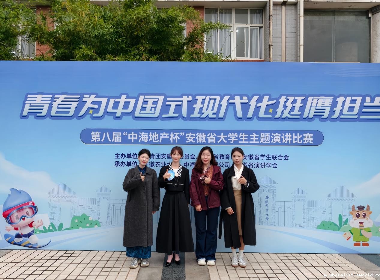 11月8日,以“青春为中国式现代化挺膺担当”为主题的第八届“中海地产杯”安徽省大学生主题演讲比赛在安徽农业大学举行,我院学子王小月、黄梦真获二等奖,张子怡获三等奖。